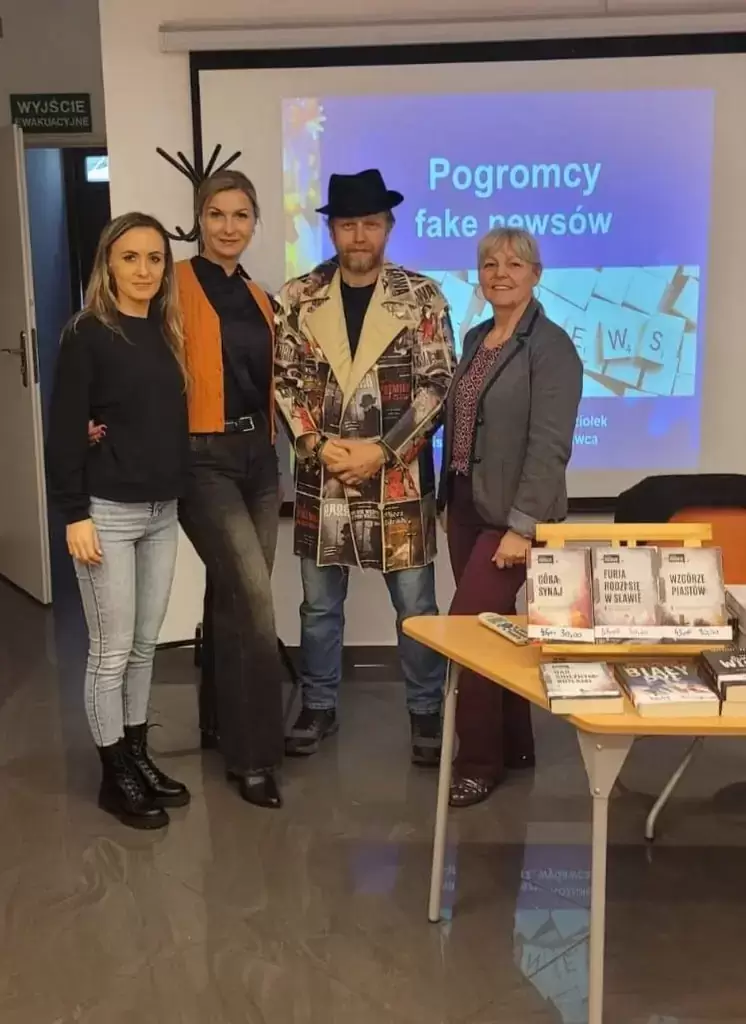 Pierwsze spotkanie skierowane było do młodzieży ze szkół średnich Powiatowego Zespół Szkół nr 1 oraz nr 2 i odbyło się pod hasłem „Pogromcy fake newsów”. Autor w niezwykle interesujący sposób opowiadał o tym, jak odróżniać prawdę od manipulacji i dlaczego warto być świadomym odbiorcą informacji.
