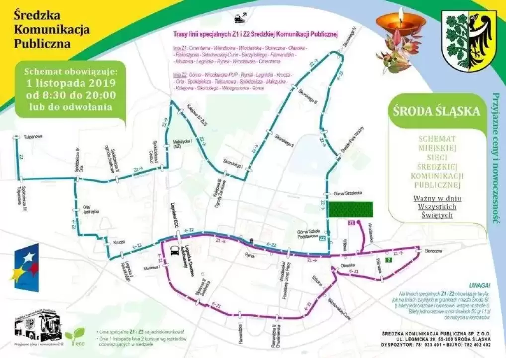Tego dnia kursować będą linie miejskie Z1 i Z2, na których obowiązywać będzie taryfa jak na liniach zwykłych w granicach miasta Środa Śląska (50 gr i 1 zł).