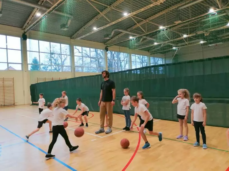 Zajęcia poprowadził pan Artur Mielczarek, zawodowy koszykarz polskiej Ekstraklasy, zawodnik takich znakomitych klubów jak Asco Śląsk Wrocław, Anwil Włocławek i Trefl Sopot.