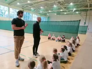 Po lekcji wychowania fizycznego z piłki koszykowej odbyło się spotkanie ze sportowcem, w czasie którego dzieci dowiedziały się wielu ciekawych rzeczy o tej dyscyplinie sportu.