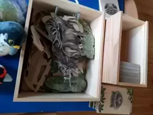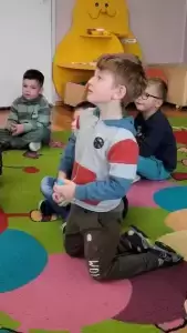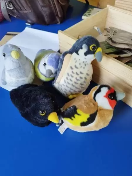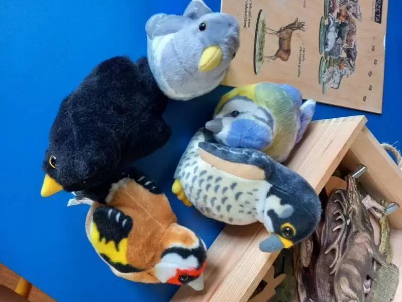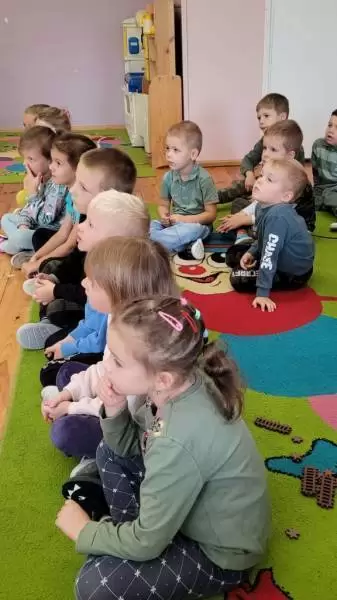 Dzieci dowiedziały się także, w jaki sposób pomóc zwierzętom przetrwać zimę i dlaczego niektóre zwierzęta gromadzą zapasy, a inne zapadają w zimowy sen. Nasz gość przyniósł ze sobą różne eksponaty, w tym pluszowe ptaszki, naśladujące ich odgłosy. Dzieci z wielkim zaciekawieniem wysłuchały poszczególnych odgłosów i próbowały rozpoznać ptaka po śpiewie. Podczas spotkania Pan Leśniczy zadawał przedszkolakom wiele pytań, z którymi dzieciaki świetnie sobie radziły.