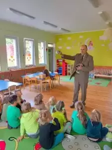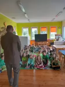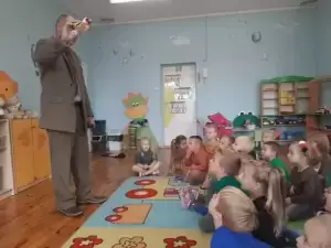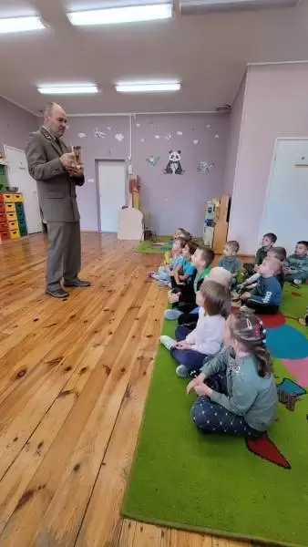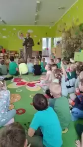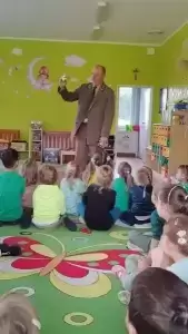 Co takiego robi ta słynna kukułka? Które zwierzęta zapadają w zimowy sen? Kiedy nie dotykamy zwierząt w lesie? Wyjaśnił również czym zajmuje się na co dzień i na czym polega jego praca. Przybliżył również zasady bezpieczeństwa podczas pobytu w lesie. Każdy przedszkolak już wie, że człowiek jest gościem w lesie i musi szanować zwyczaje wszystkich jego mieszkańców, czyli zwierząt.