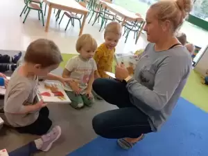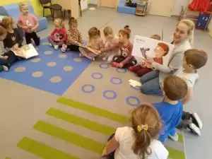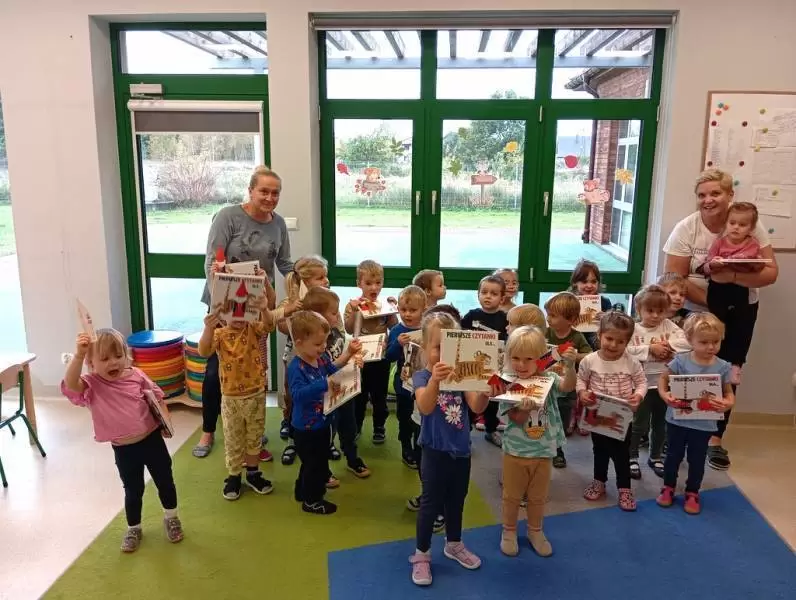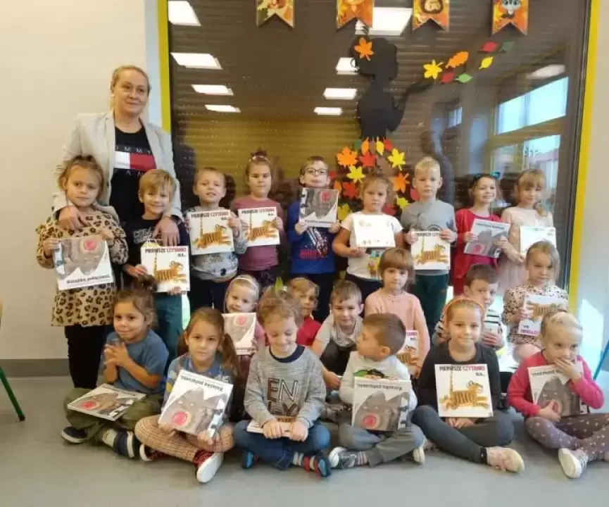 Inicjatorką udziału dzieci w projekcie była Pani Wioletta Borkowska, która trzykrotnie odwiedziła przedszkole, aby przeprowadzić z dziećmi lekcje biblioteczne. Dzieci z grup Krasnale, Jeżyki i Motylki poznały zasady korzystania z biblioteki publicznej, dowiedziały się jak mogą wypożyczyć książkę, jak dbać o książki. Każdy przedszkolak w prezencie dostał pamiątkową książkę, którą będzie mógł czytać wraz z rodzicami w domu.