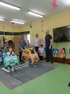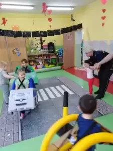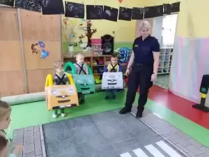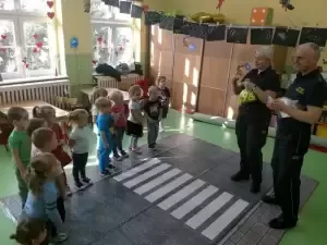 Strażnicy przeczytali opowiadanie o bezpiecznym zachowaniu się na drodze oraz przygotowali zajęcia praktyczne, których podstawowym celem jest bezpieczeństwo. Zajęcia dały możliwość wspólnej zabawy, radości oraz niezapomnianych wrażeń.