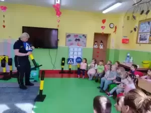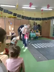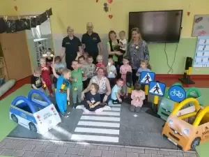 Dzieci otrzymały upominki, dzięki którym będą bardziej widoczni na drodze. Przedszkolaki w ramach wdzięczności zatańczyły dla gości po czym serdecznie podziękowały.