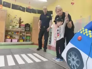 W ramach akcji "Mały Miś w Świecie Literatury" przedszkolaki z grup Motylki i Kotki z Przedszkola Publicznego nr 1 w Środzie Śląskiej 28 lutego wzięły udział w kolejnym "misiowym module" pod tytułem: "Bezpieczni z Małym Misiem" w ramach, którego zaproszono do współpracy pracowników Straży Miejskiej: starszego inspektora Marka Koziarskiego oraz zastępcę komendanta Agnieszkę Tomaszewską.