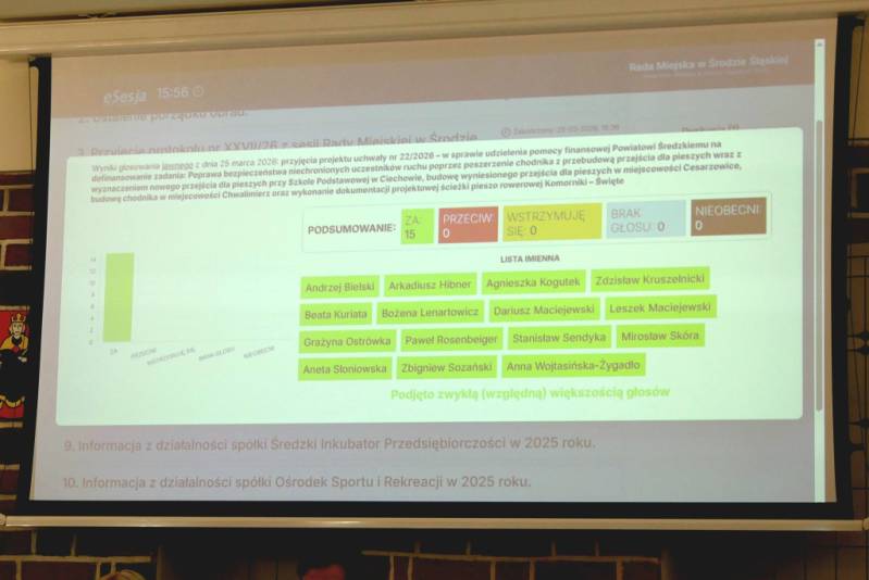 Radni podjęli również uchwały dotyczące wysokości opłat cmentarnych oraz regulaminu Cmentarza Komunalnego w Środzie Śląskiej, zatwierdzenia "Sołeckiej Strategii Rozwoju Wsi Ogrodnica na lata 2026-2033" oraz nadania imienia Szkole Podstawowej nr 1 w Środzie Śląskiej.