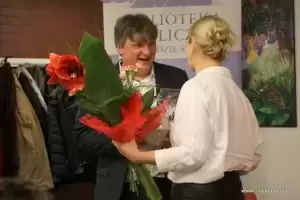 Jeszcze w szkole podstawowej, kiedy byłem czytelnikiem średzkiej biblioteki, po ukończeniu zajęć wspólnie z kolegą jechaliśmy ze Szczepanowa do Środy Śląskiej komunikacją publiczną, by wypożyczyć nowe książki. Mieliśmy około 20 minut do autobusu powrotnego, więc z dworca szybko biegliśmy tutaj, wybieraliśmy interesujące nas książki, by zdążyć na autobus powrotny. Bardzo mile wspominam te wyprawy oraz miejsce, w którym się dzisiaj znajdujemy. Jest mi niezmierni miło, że mogę występować przed Państwem jako gość. Kiedy odwiedzałem to miejsce jako młody czytelnik, często sięgałem po książki science fiction.