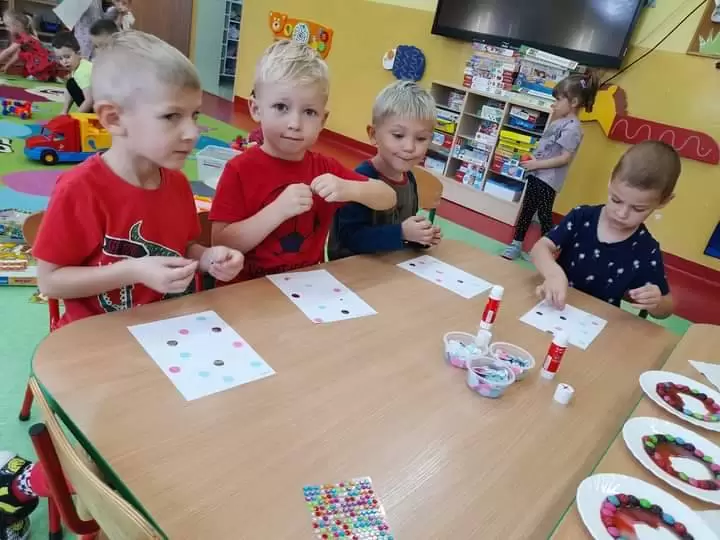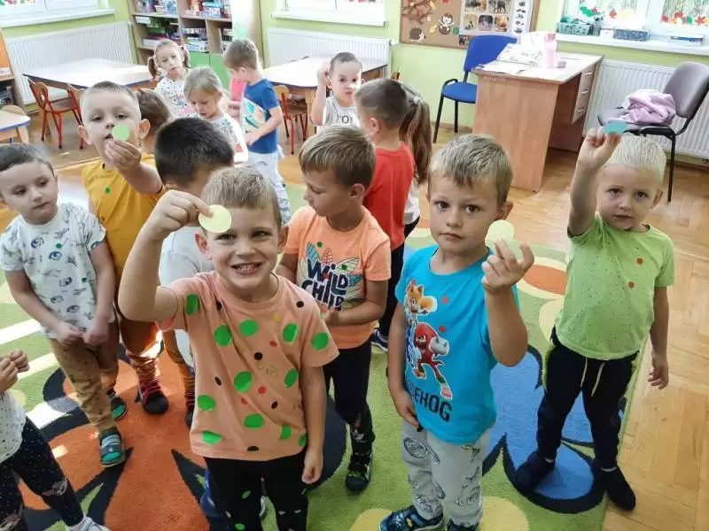 Tego dnia również dostrzegaliśmy kropki tam, gdzie wcześniej nikt na nie nie zwracał uwagi. Okazało się, że kropki towarzyszą nam w naszym codziennym życiu: są w kropkach biedronki, z kropki można utworzyć słońce, bombkę choinkową, kolorową kulę czy piłkę.