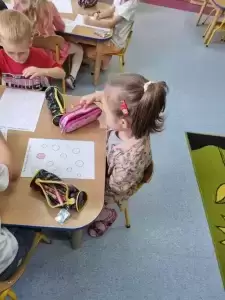 Na zajęciach poznaliśmy genezę tego święta. Dzieci uważnie wysłuchały opowiadania, jak to zwyczajna kropka zmieniła świat małej dziewczynki o imieniu Vashti. Historia ta uświadomiła przedszkolakom, że każdy z nas ma jakieś ukryte zdolności, TALENT.