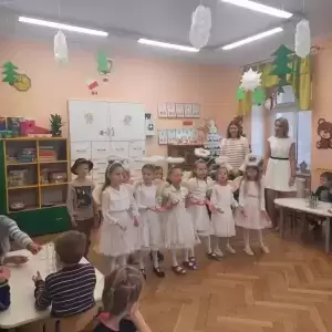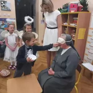 W Spotkaniu wzięły udział dzieci z Niepublicznego Przedszkola Entliczek, Publicznego Przedszkola nr 3, Przedszkola z Rakoszyc oraz Niepublicznego Przedszkola Sióstr Salezjanek. Na początku spotkania Siostra Dyrektor Magdalena Giera zaprosiła Gości do Kaplicy na wspólną modlitwę. Świąteczne zmagania poprzedził występ dzieci z najstarszej grupy "Jeżyki"- przedszkolnych gospodarzy.