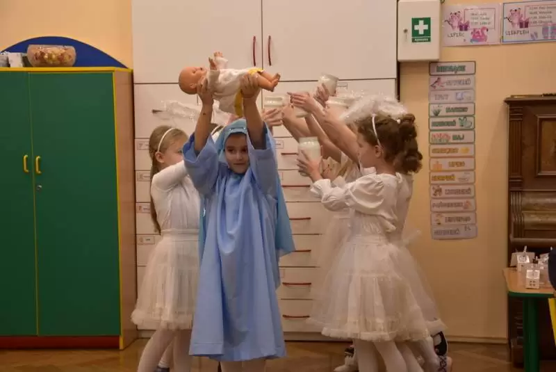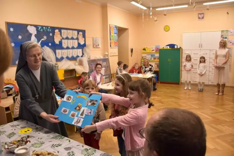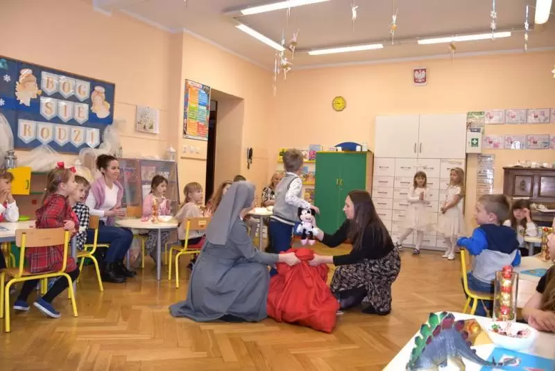 15.12.2023 r. w Niepublicznym Przedszkolu Sióstr Salezjanek w Środzie Śląskiej już po raz dziewiąty zorganizowano Międzyprzedszkolne Spotkanie o Tradycjach Świąt Bożego Narodzenia.