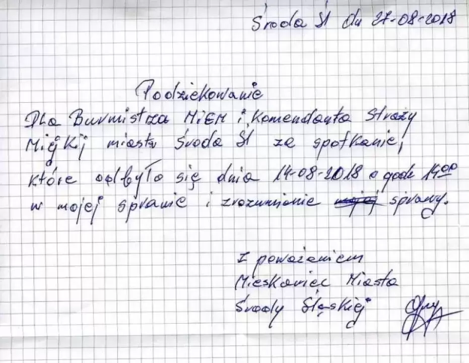 Mieszkaniec Środy Śląskiej dziękuje