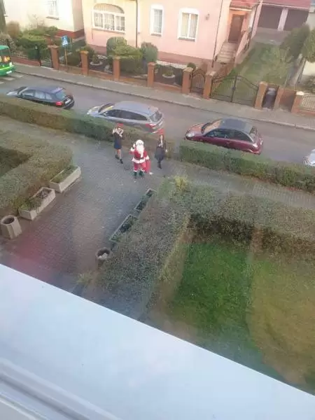 Z powodu sytuacji epidemiologicznej w naszym kraju, dla bezpieczeństwa dzieci Mikołaj zostawił prezenty pod drzwiami sal, a osobiście pozdrowił wszystkich z przedszkolnego podwórka.