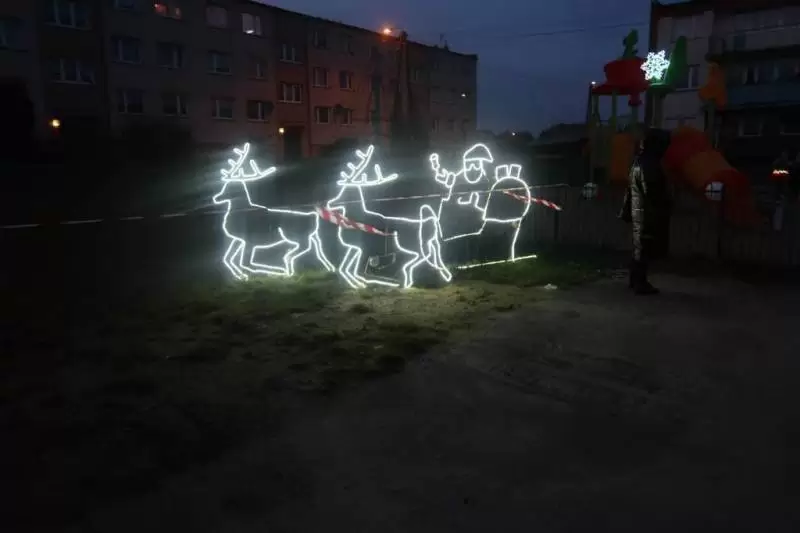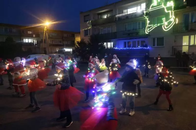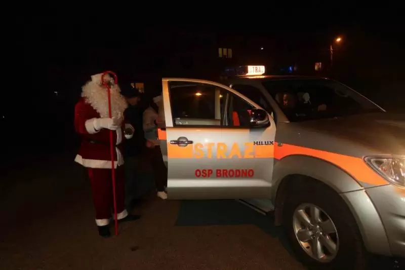 Wszyscy wiedzą, że przyjeżdża zwykle na saniach z reniferami. Do Ciechowa jednak przyjechał oświetlonym wozem strażackim, ponieważ jego pojazd uległ awarii. Strażacy, kiedy usłyszeli o jego problemach, bez wahania ruszyli mu z pomocą i przywieźli na plac zabaw na osiedlu „Na Skarpie”. A tam z niecierpliwością już czekali na niego najmłodsi. Dzieci przywitały Świętego zimnymi ogniami z uśmiechem na ustach, a grupa taneczna ze Szkoły Podstawowej w Ciechowie pod kierunkiem p. Edyty Dyndy zatańczyła dla niego w rytm świątecznych przebojów.
