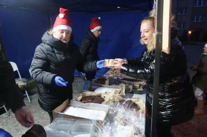 Mikołaj przywiózł i rozdał 205 paczek ze słodkościami. W tej czynności dzielnie pomagały mu jego śnieżynki. Każde dziecko po otrzymaniu paczki mogło z pomocą rodzica zrobić sobie pamiątkowe zdjęcie z brodatym gościem z bieguna północnego. Zebrani dorośli opiekunowie mogli zjeść pyszny bigos, napić się grzańca i kupić coś słodkiego.Radości wszystkich nie było końca, co widać wyraźnie na zdjęciach!