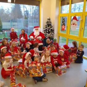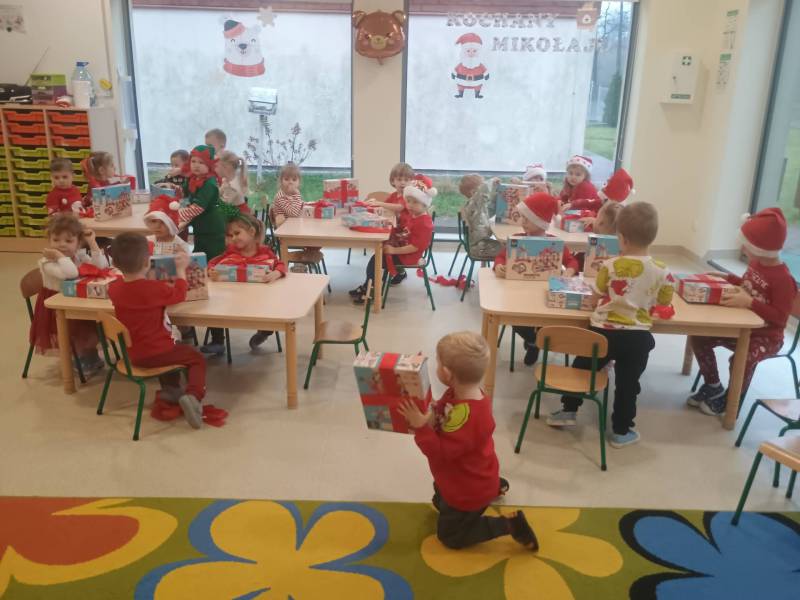 Święty Mikołaj obdarował wszystkie dzieci wspaniałymi prezentami. Na twarzach dzieci malowała się wielka radość.