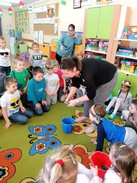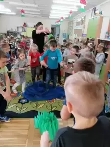 Nauczycielki urządziły dla starszaków konkursy i zabawy. Pani Urszula Ostropolska - quiz i zagadki, Pani Ola - historię Pluszowego Misia, Pani Arleta Rajczakowska - zabawy misiowe w języku angielskim.