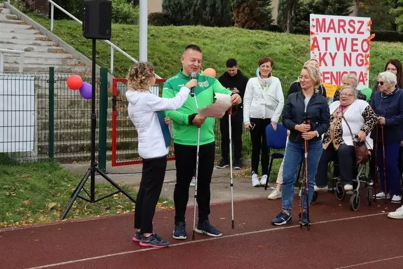 To kontynuacja ubiegłorocznej inicjatywy zmotywowania seniorów do ruchu na świeżym powietrzu. Nie przypadkowo Marsz Aktywnego Seniora zorganizowano na początku października, bo właśnie ten miesiąc należy do seniorów. Na starcie powitał ich burmistrz Adam Ruciński, który odczytał wiersz dedykowany seniorom, a później dotrzymywał kroku maszerującym.