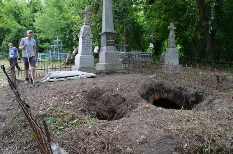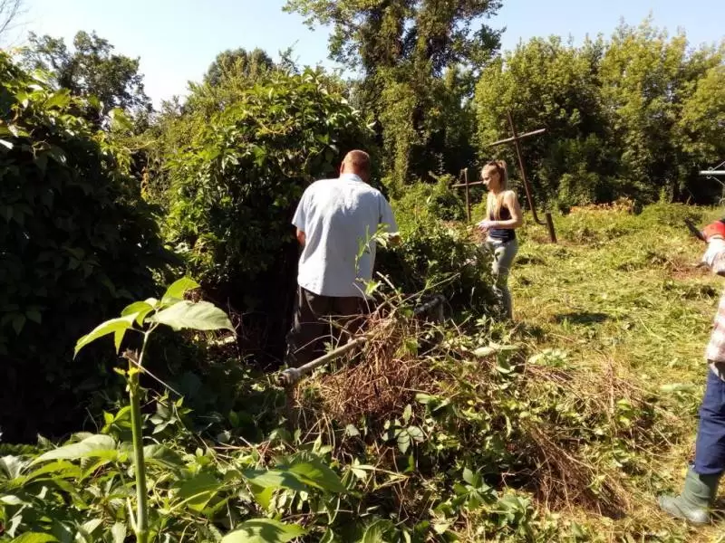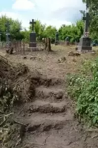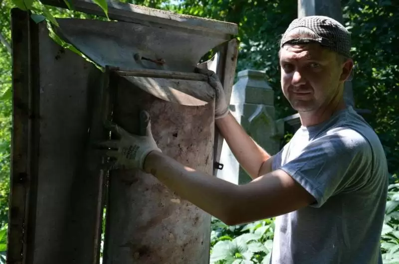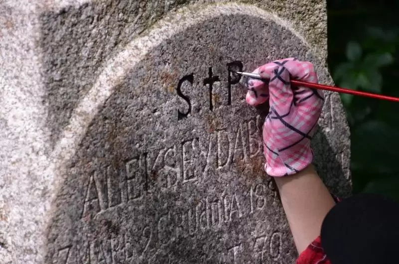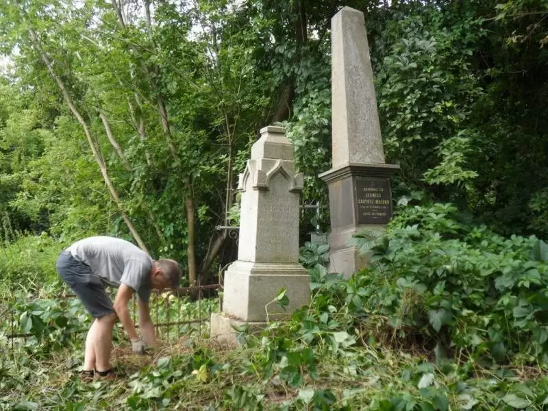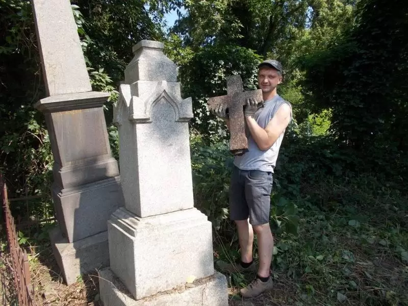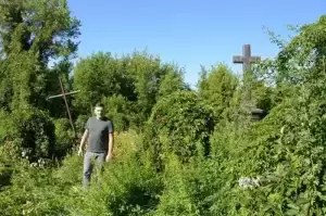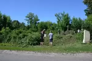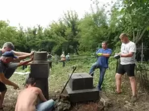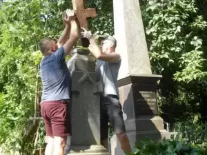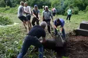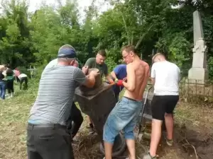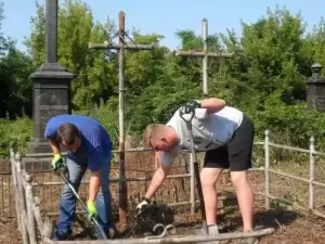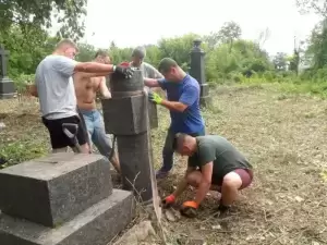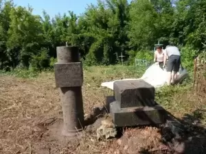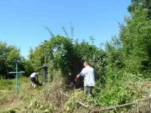 Praca na cmentarzu była niezwykle żmudna i trudna ze względu na panujące tam warunki. Był to teren o nierównym podłożu (należało uważać na doły i otwarte krypty), pełen chaszczy, porośnięty gęsto dzikim winem i samosiejkami drzew, bez żadnej ścieżki, z dziko rosnącą trawą i plątaniną wystających wszędzie korzeni. Ale za to jaka potem była satysfakcja, kiedy krok, po kroku znajdywaliśmy w tym gąszczu zieleni coraz to nowe groby i pomniki. (Znalezione zostało także metalowe wieko trumny). W miarę usuwania zielska znaleźliśmy i wydobyliśmy z ziemi 3 marmurowe pomniki z XIX wieku. Napisy na nich dobrze się zachowały, być może dlatego, że leżały latami zakopane inskrypcją do ziemi. Fakt, że wykonane były z drogiego, bardzo dobrze zachowanego kamienia świadczy o tym, że na tym cmentarzu chowano ludzi wywodzących się z polskiej arystokracji.