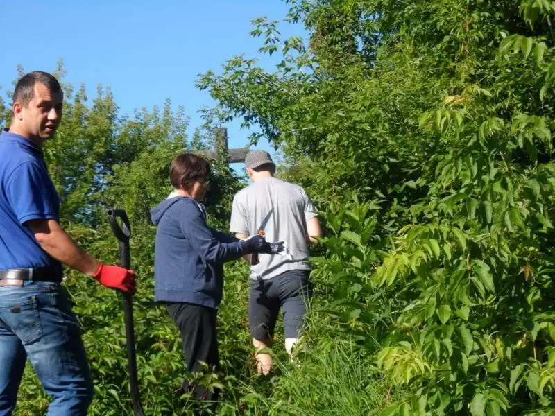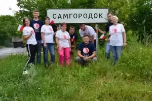 Chęć uporządkowania przez nas cmentarza w Samgorodku ma swoją historię. Połowa wolontariuszy z naszej grupy miała okazję go zobaczyć w zeszłym roku, kiedy braliśmy udział w akcji we wsi Machnówka. Był on w tak opłakanym stanie, że tylko czubek wystającego z chaszczy wysokiego krzyża, mógł przyjezdnym sugerować, że znajduje się tam cmentarz. Widok aż tak zaniedbanej nekropolii był wyjątkowo przygnębiający i wrył nam się w pamięć, że postanowiliśmy go koniecznie uporządkować w następnej, tegorocznej akcji. Przygotowywaliśmy się do tego cały rok zbierając znicze, kwestując, szukając sponsorów i przygotowując dary dla Polaków mieszkających w Samgorodku.