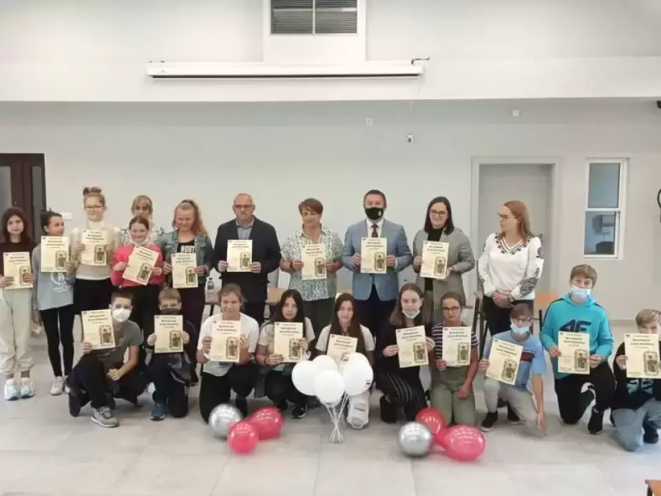 Na Narodowym Czytaniu w RCCiKL w Rakoszycach obecni byli uczniowie klasy 7a ze Szkoły Podstawowej w Rakoszycach razem z dyrektor placówki Jadwigą Cielińską oraz nauczycielami Leszkiem Skawińskim i Jolantą Król.