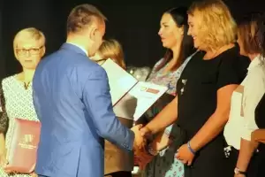 - Biblioteka Publiczna ma duże tradycje w Środzie Śląskiej. W tej chwili jest to naprawdę nowoczesne miejsce spotkań, gdzie można zaczerpnąć dużo wiadomości o literaturze, prozie, o poetyce. Naprawdę wiele eventów o tym świadczy. Pani dyrektor Anna Kuszlik - Czajkowska zaprasza bardzo ciekawe osobowości. Często też korzystam z tych zaproszeń i widzę wielu sympatyków biblioteki, wielu mieszkańców, nawet spoza terenu gminy. To są naprawdę bardzo ciekawe spotkania, bardzo atrakcyjne. Działalność jest szeroko rozpoznawalna w szczególności i poprzez centrum, tutaj w mieście oraz filie biblioteki na terenie naszej gmin. Pracownice są bardzo zaangażowane. Jest to świetny zespół, z którym się świetnie współpracuje. My, jako gmina Środa Śląska, wspieramy działalność Biblioteki Publicznej. Rocznie co najmniej 30 tysięcy zł przeznaczamy na powiększanie księgozbioru. Eventy, stałe grono czytelników, stałe wsparcie i świetna kadra na czele z panią detektor, to znaki rozpoznawcze Biblioteki Publicznej w Środzie Śląskiej - mówił burmistrz.