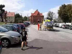 Śmigłowiec podjął kilka prób lądowania na pl. Wolności, jednak ostatecznie znalazł dogodne miejsce na parkingu koło dawnego szpitala, skąd zabrał chorego.