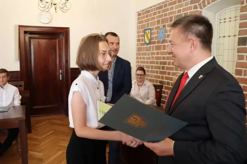 30 sierpnia w sali sesyjnej Urzędu Miejskiego prymusi klas ósmych otrzymali stypendia z rąk burmistrza. – Mówią, że nauka to potęgi klucz i to jest prawda, a Wy jesteście dowodem na to, że ciężką pracą i wysiłkiem można osiągnąć wiele – zwrócił się do nagrodzonych uczniów burmistrz Adam Ruciński. – Życzę Wam, żebyście sięgali po najwyższe cele i osiągali największe sukcesy na dalszych etapach edukacji, bo Wasze pokolenie jest przyszłością nas wszystkich – dodał włodarz, który słowa uznania skierował także do dyrektorów SP nr 3 i SP w Ciechowie.