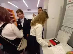 „Panią Twardowską” z podziałem na role odczytał Burmistrz Środy Śląskiej Adam Ruciński z Dyrektor Szkoły Podstawowej nr 3 Emilią Latos.