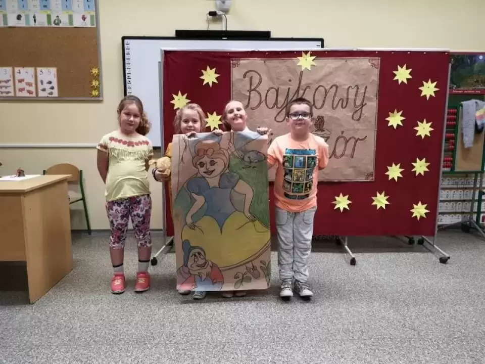 Wieczór Bajek był ukoronowaniem całego pracowitego tygodnia, podczas którego dzieci codziennie wypożyczały książki ze szkolnej biblioteki. W domu czytały wspólnie z rodzicami. Uczniowie klasy 1a czytali „ Czerwonego Kapturka”, „Kota w butach”, „Kopciuszka” i „Królewnę Śnieżkę”, natomiast uczniowie klasy 1b poznawali przygody słonia Elmera z cyklu opowieści autorstwa Davida Mckee.