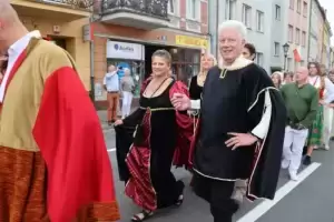 Przy okazji goście z partnerskiej gminy uczestniczyli w obchodach Święta Wina w Mieście Skarbów i zatańczyli poloneza inaugurującego imprezę. Johannes Bischoff i Mariola Szczepan, wieloletni pracownik PCK w Środzie Śląskiej, otrzymali tytuł „Super Para z Korowodu”. Delegacja miała też okazję zobaczyć Skarb Średzki w Muzeum Regionalnym oraz odbyć spacer historyczny po Środzie Śląskiej ze Zbigniewem Aleksym.