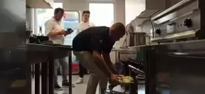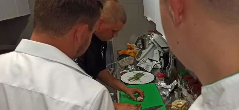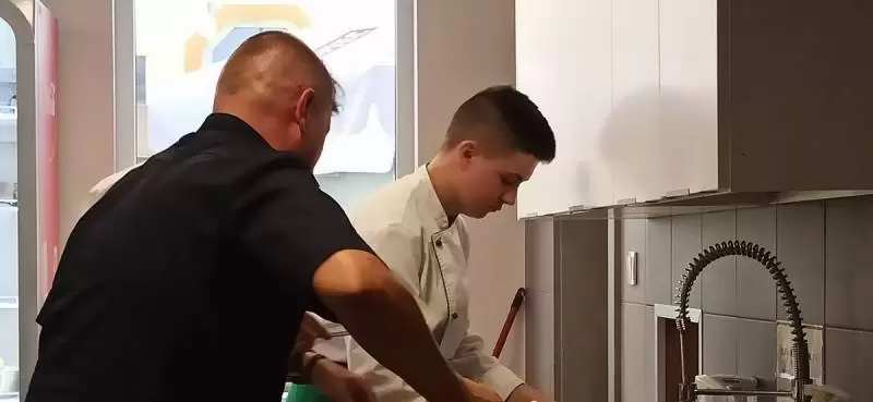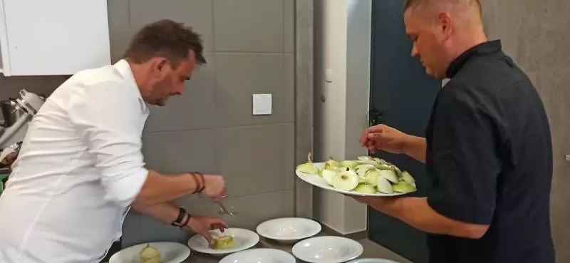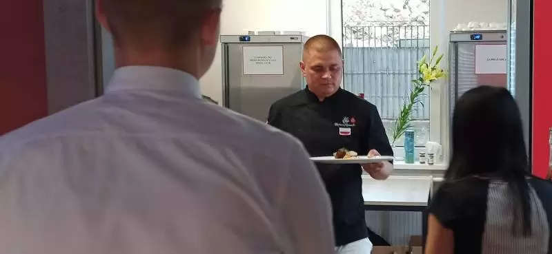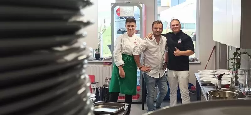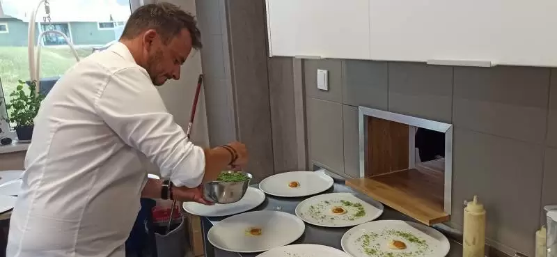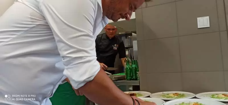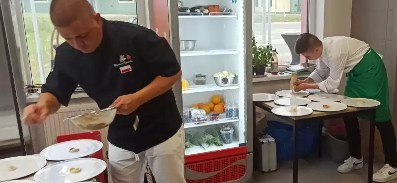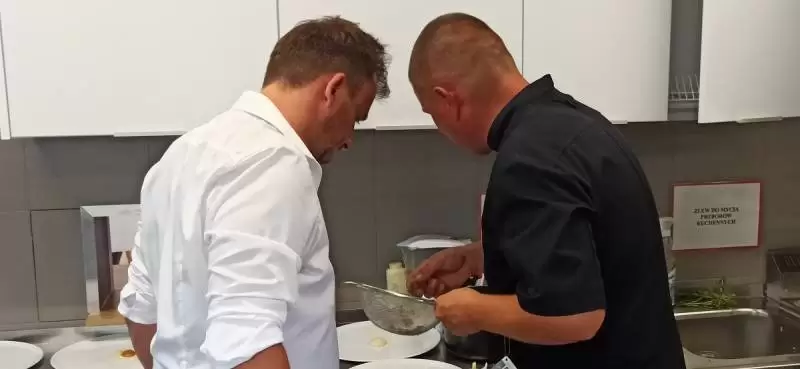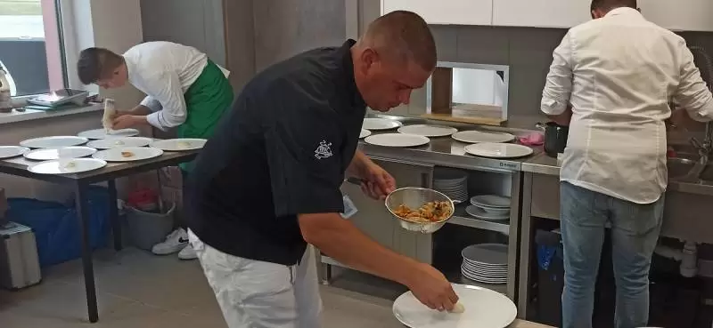 Mariusz pozwolił nam zajrzeć za kulisy, czyli do kuchni. Oj, było gorąco, ale efekty wspaniałe i mamy nadzieję, że już za kilka dni każdy będzie mógł skosztować tych pyszności.