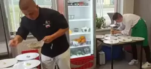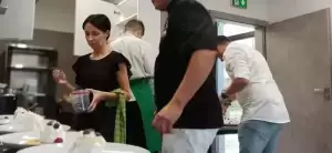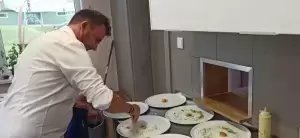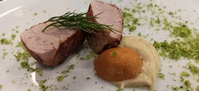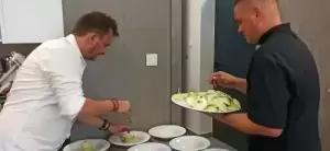 Daniem głównym była polędwica wieprzowa z pure z białej cebuli i pomarańczy z marynowanym prawdziwkiem, a na deser beza Pavlova z musem z mango. Kucharze zadbali o każdy szczegół prezentowanych dań, a także o dobrą atmosferę podczas kolacji. Rozmawiali z zaproszonymi gośćmi na temat ich odczuć po zjedzeniu każdego dania.