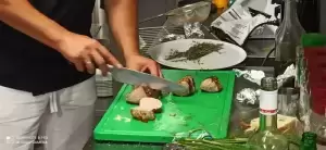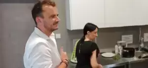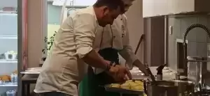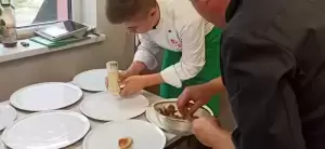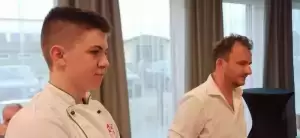 Rodzinna ekipa z pomocą gościa - Grzegorza Zawieruchy - zwycięzcy 8 edycji programu MasterChef Polska, przygotowała przepyszną przystawkę w postaci kremu z cebuli podanego bardzo oryginalnie w cebulach.