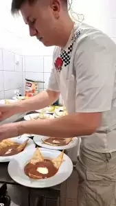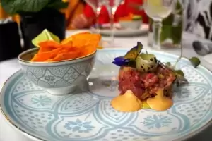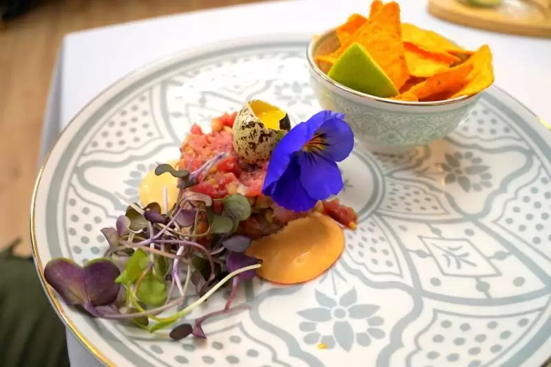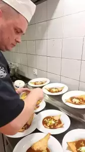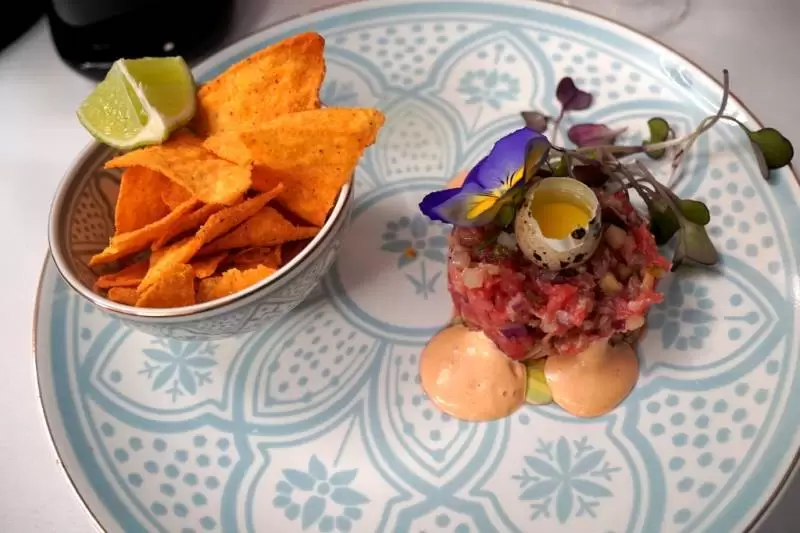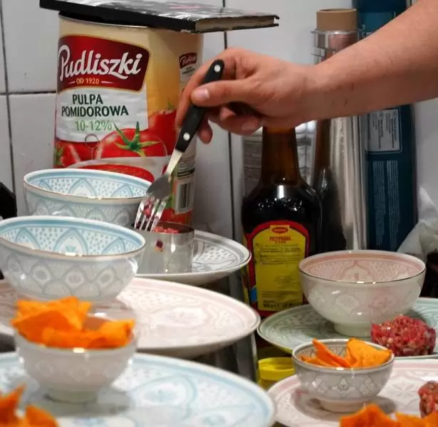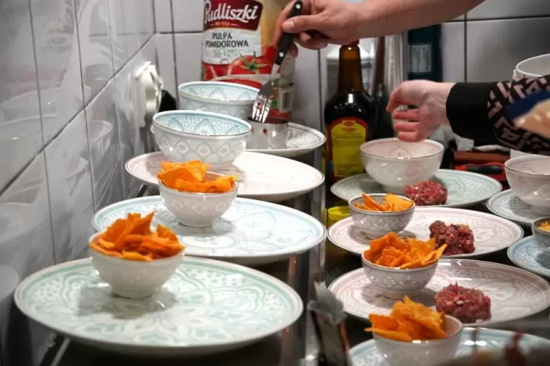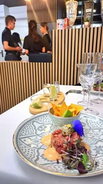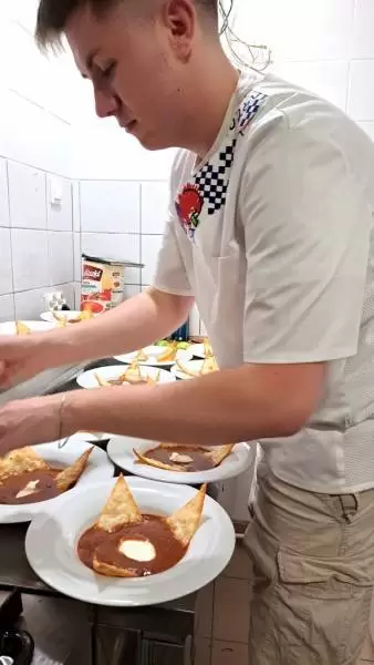 Otwarcie poprzedziły trzy kolacje degustacyjne. My zostaliśmy zaproszeni na pierwszą z nich, 11 kwietnia. Ojciec i syn włożyli dużo serca w przygotowanie potraw, w sumie zaproszonym gościom zaserwowali tatara wołowego z meksykańskimi dodatkami, zupę meksykańską i krewetki po meksykańsku - wszystko bardzo smaczne, z wieloma dodatkami i pięknie podane, a na koniec deser - meksykański pudding flan.