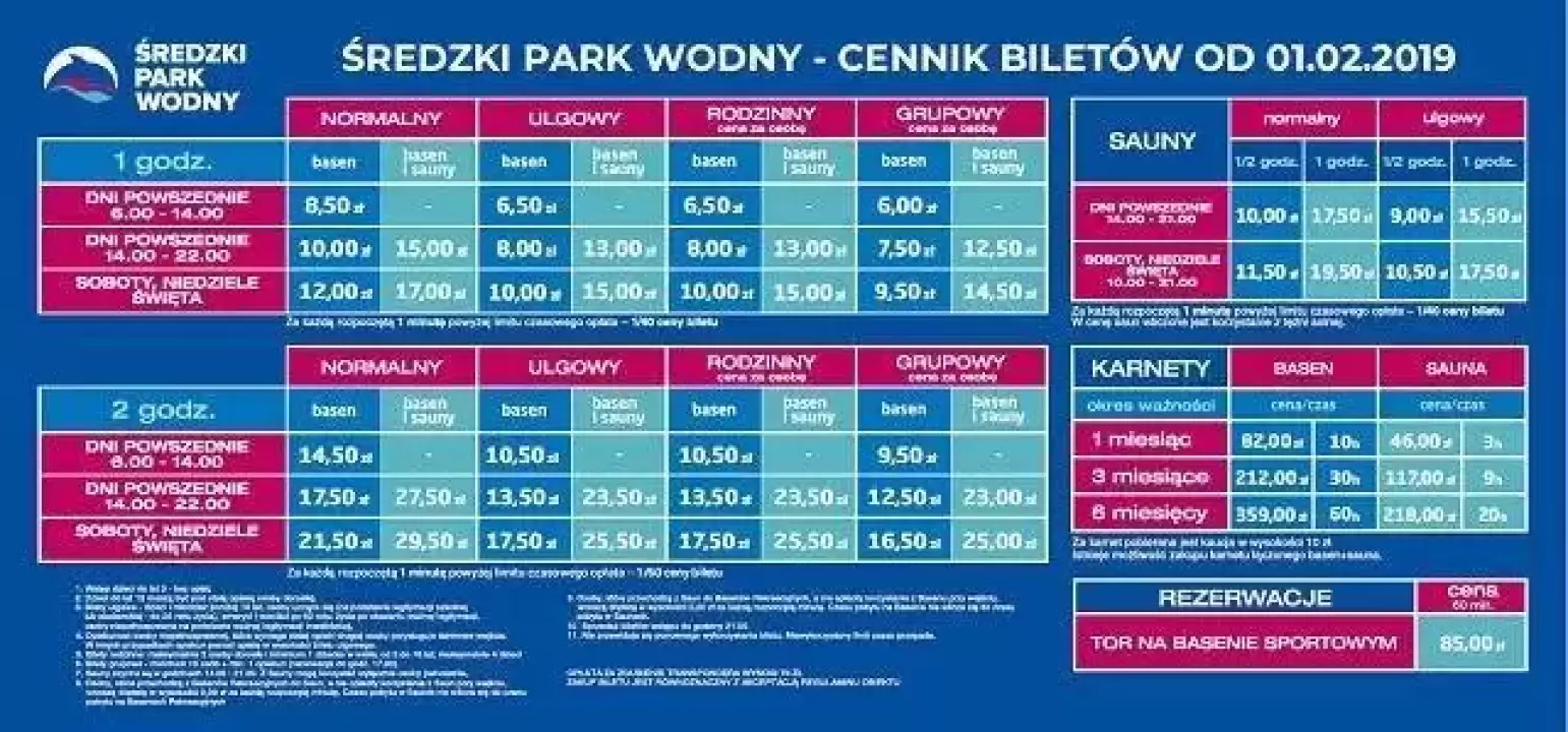 Ze względu na wzrost kosztów utrzymania obiektu, od 1 lutego 2019 r. ceny w średzkim Parku Wodnym wzrastają następująco: