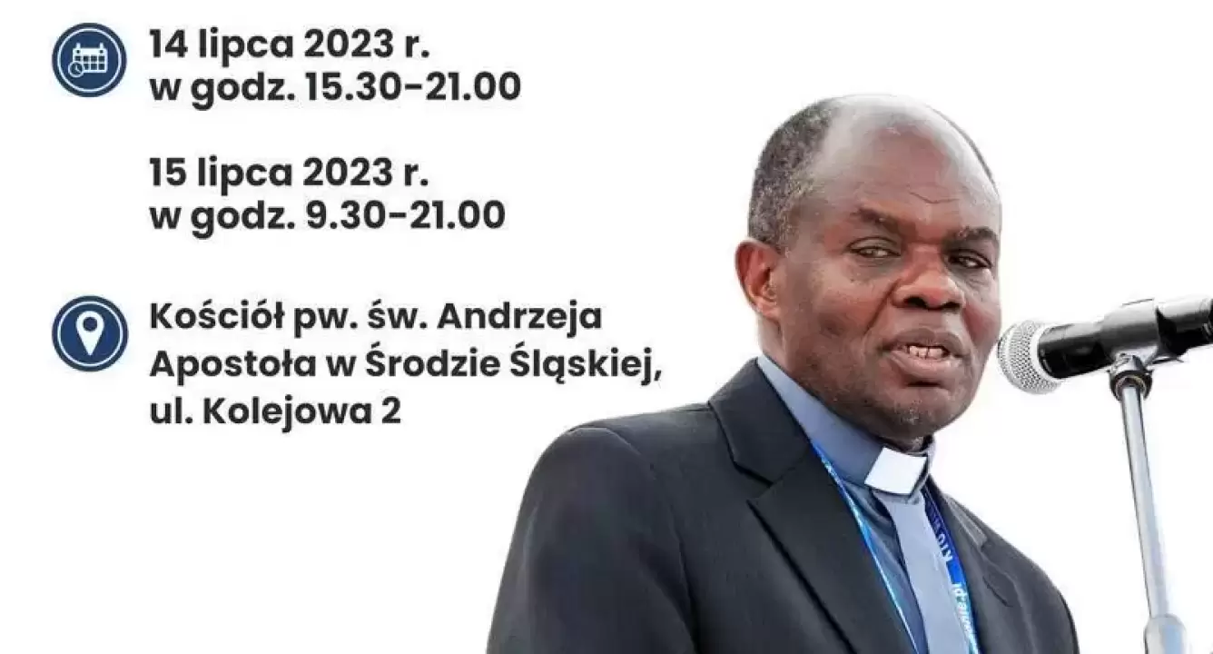 W dniach 14-15 lipca w kościele parafialnym św. Andrzeja Apostoła w Środzie Śląskiej odbędą się rekolekcje, które poprowadzi O. John Bashobora z Ugandy.