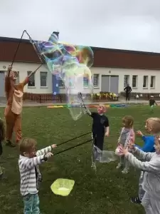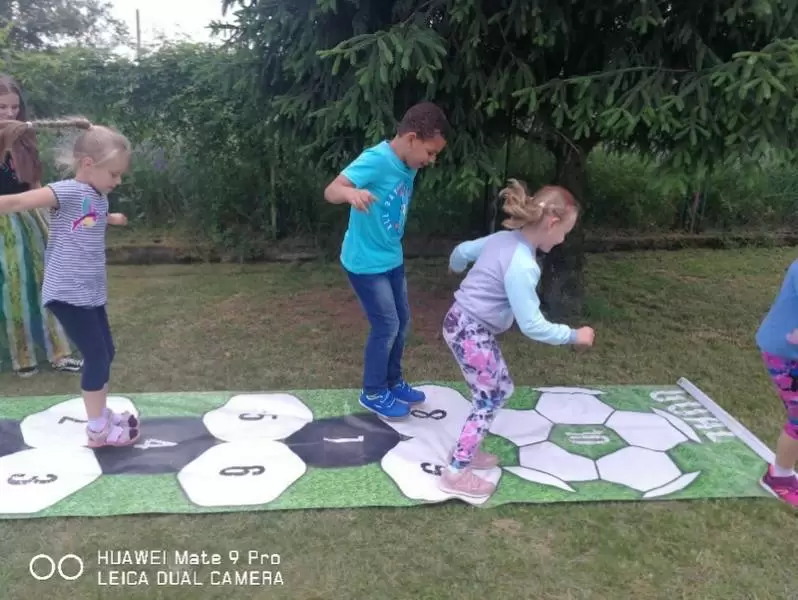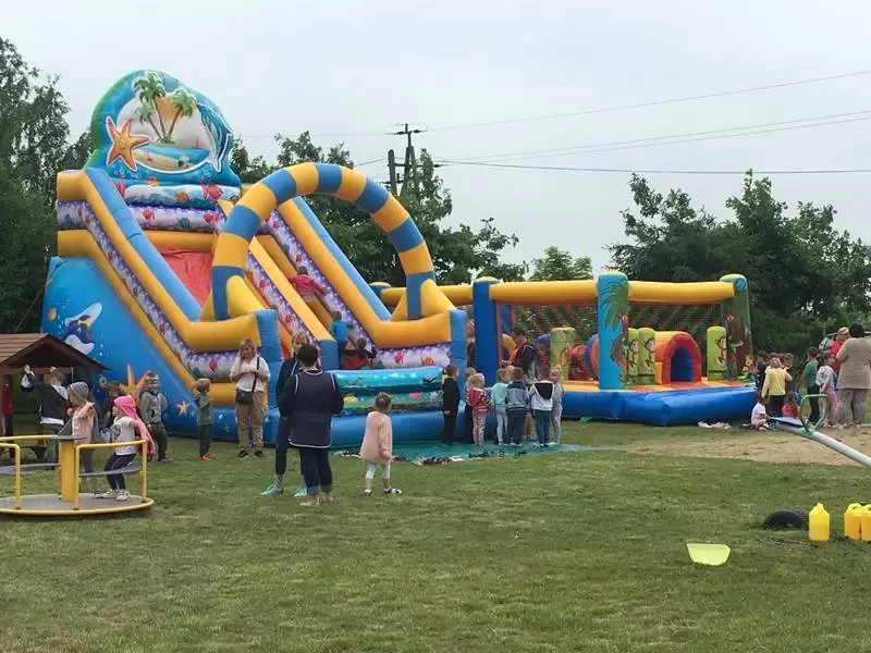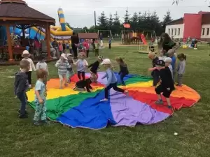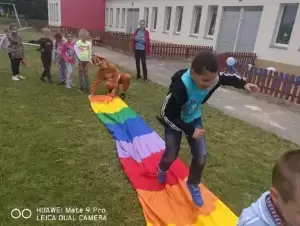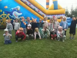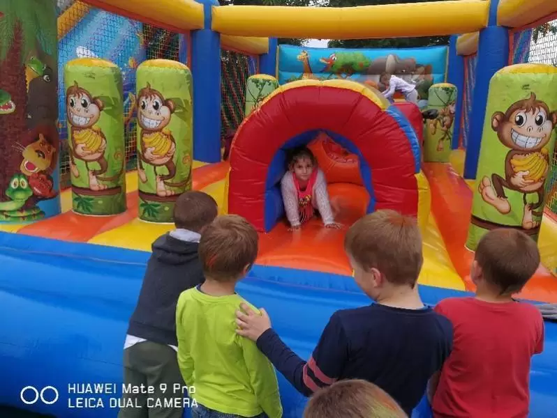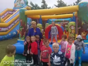 Był to dzień pełen atrakcji i wrażeń. Przedszkolaki ochoczo bawiły się na dmuchanym placu zabaw i zjeżdżalni, uczestniczyły w zabawach i tańcach animacyjnych oraz malowaniu twarzy. Atrakcyjną zabawą okazało się samodzielne robienie dużych rozmiarów baniek mydlanych. Wielką niespodzianką dla dzieci okazała się również „żywa” maskotka Minionka, z którą przedszkolaki chętnie się witały i przybijały „piątki”.