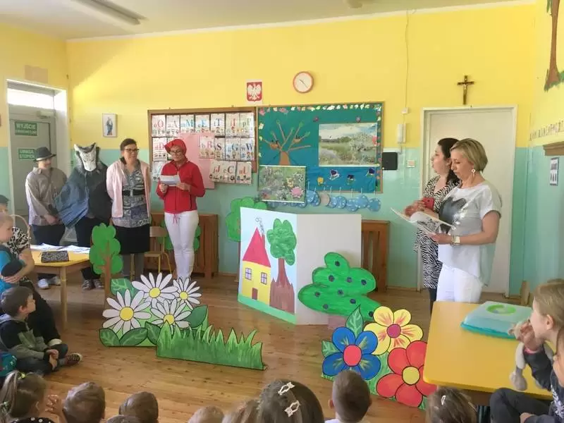 30 czerwca nauczyciele przygotowali przedstawienie dla swoich podopiecznych. „Czerwony Kapturek” w wykonaniu pań z przedszkola okazał się dla dzieci niezwykłą niespodzianką i zaskoczeniem. Przedszkolaki nagrodziły „aktorów” ogromnymi brawami.