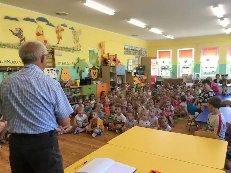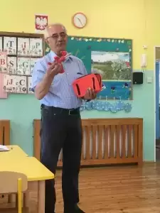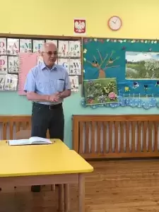 Kolejnym gościem był lekarz weterynarii z Ciechowa, który opowiedział dzieciom jak należy opiekować się zwierzątkami. Przedszkolaki z zainteresowaniem słuchały pogadanki zadając liczne pytania.