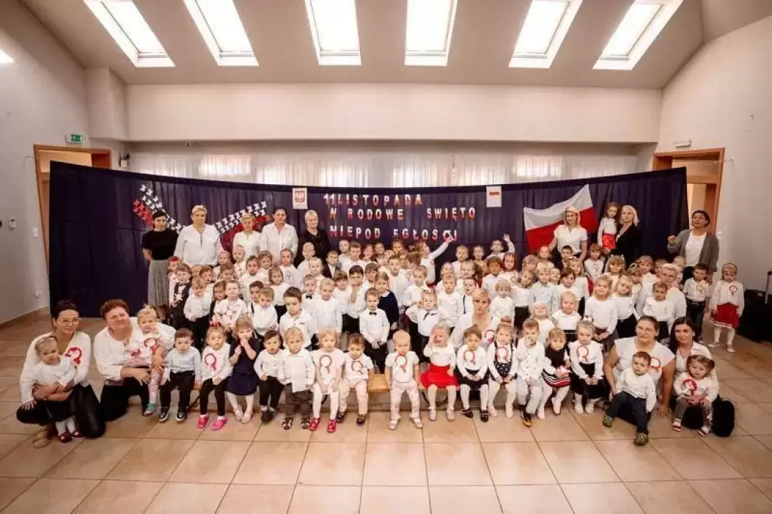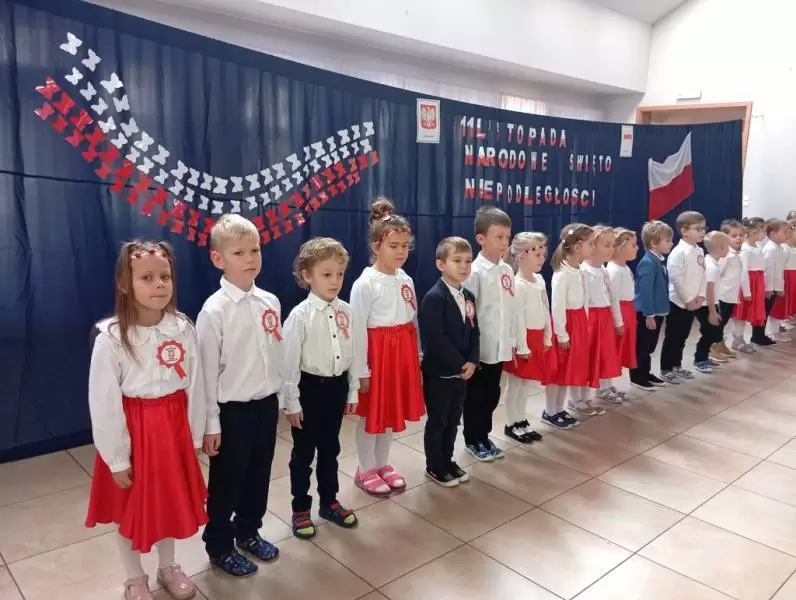 Tego dnia odbyła się uroczystość upamiętniająca 105. rocznicę odzyskania niepodległości przez Polskę. Z tej okazji dzieci z wszystkich grup oraz pracownicy przedszkola i żłobka zebrali się, aby uczestniczyć w apelu przygotowanym przez dzieci z najstarszej grupy Motylki.