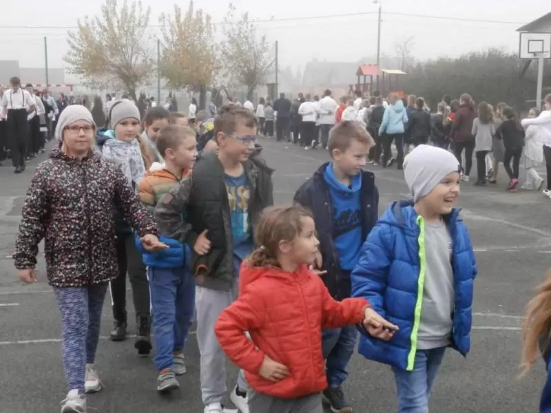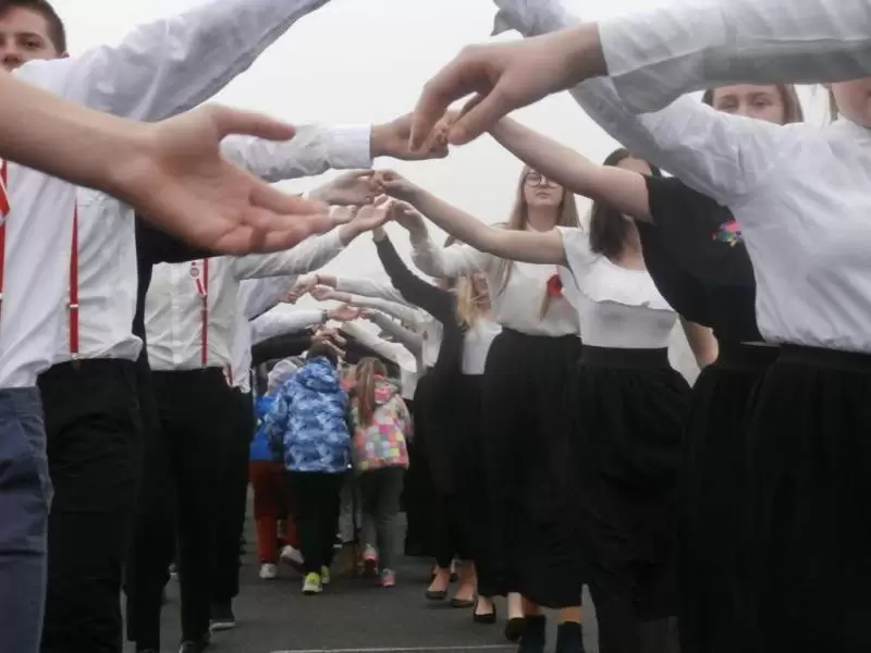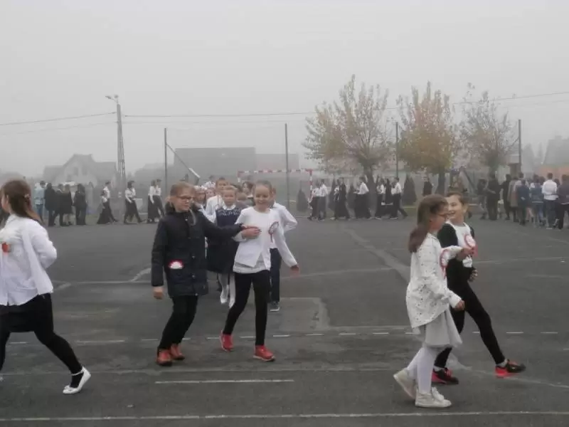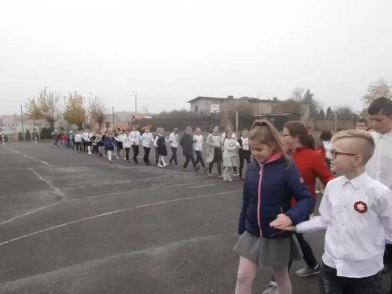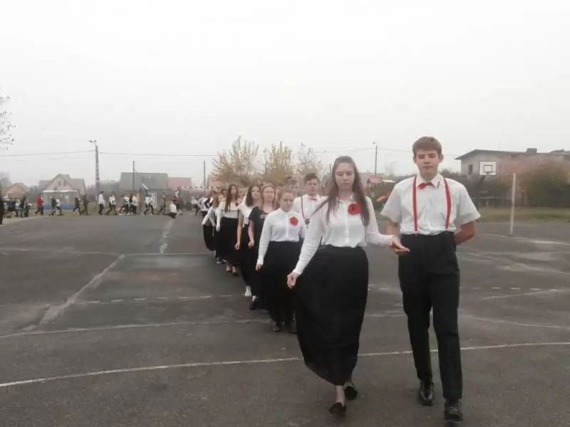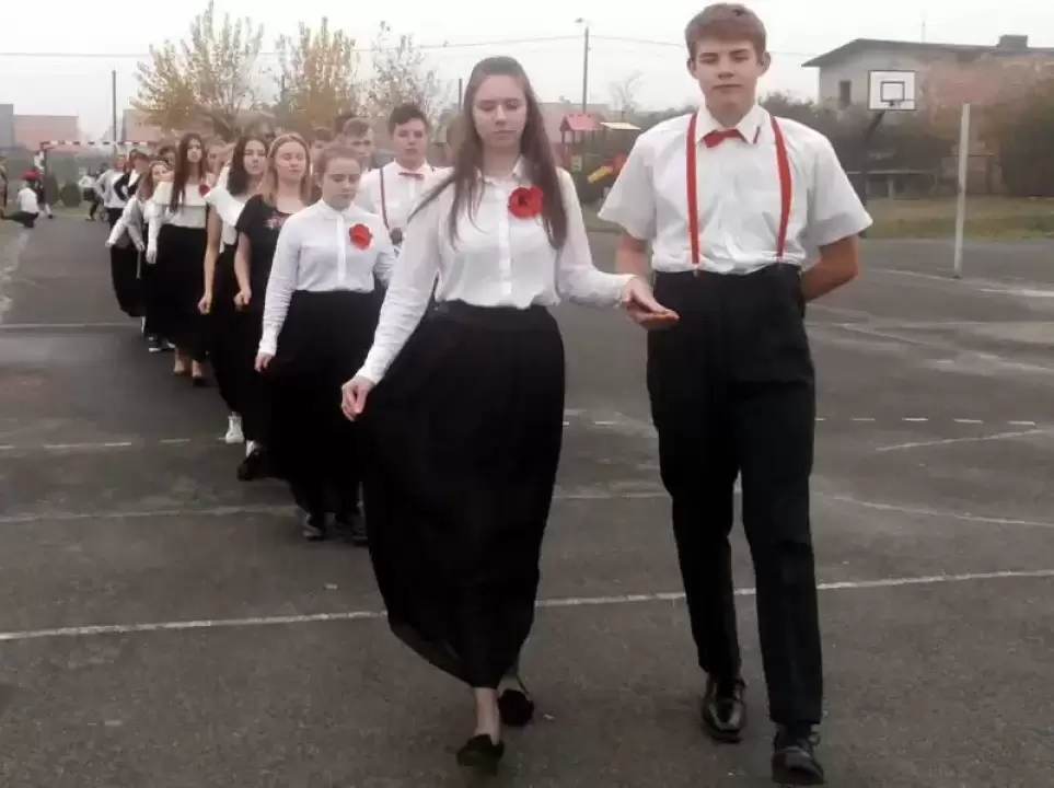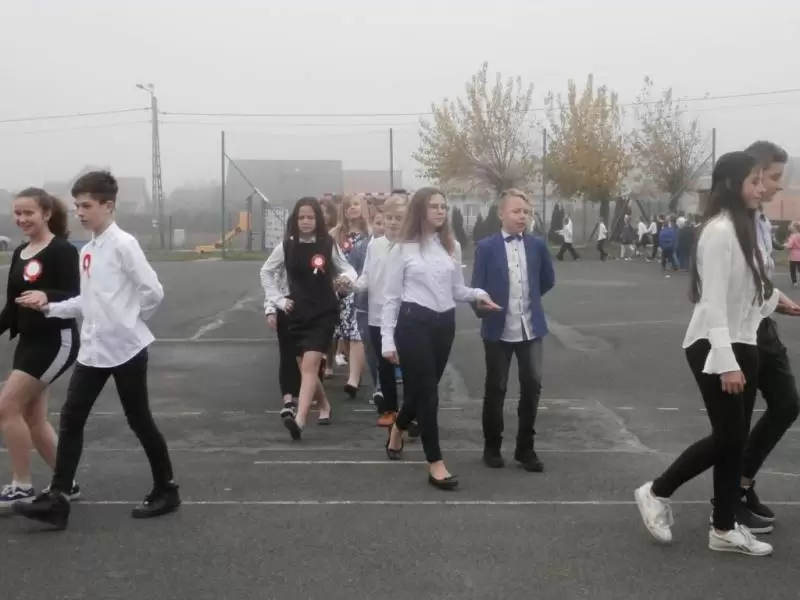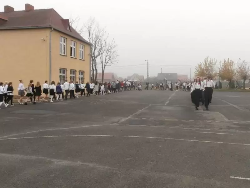 Na boisku szkolnym 100 par zatańczyło poloneza. O godzinie 11:11 włączyliśmy się w akcję „Rekord dla Niepodległej”, z dumą i wzruszeniem wspólnie odśpiewaliśmy 4 zwrotki hymnu narodowego.