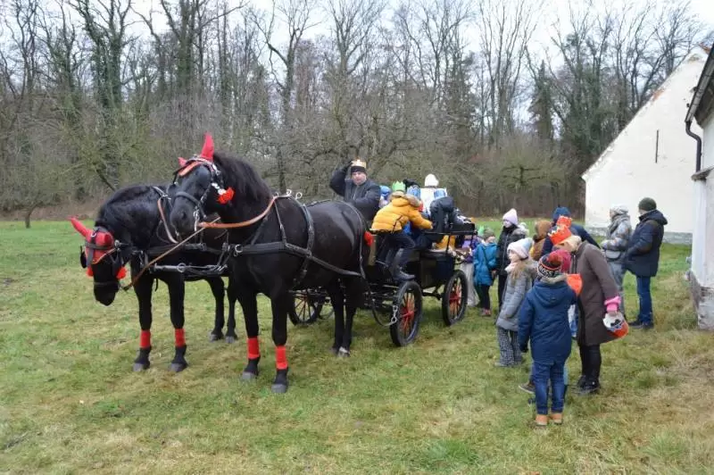 Przy wspólnym ognisku z kiełbaskami, ogrzani gorącą kawą i herbatą, częstowani słodkościami mieszkańcy parafii wspólnie kolędowali. Nie tylko najmłodsi, ale również dorośli chętnie korzystali z przejażdżki bryczką konną.