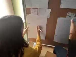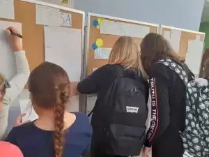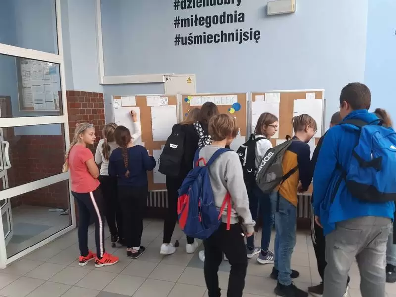 Był to tydzień z kodowaniem w języku Mors’a, który bardzo łatwo uczniowie opanowali i stosowali. Jednym z ciekawych zadań było kodowanie wszystkich tematów lekcji na specjalnie do tego przygotowanej tablicy. Uczniowie bardzo chętnie podjęli się nowego wyzwania, co widoczne było podczas przerw. Tablica w holu była oblegana przez klasowych specjalistów zajętych kodowaniem.