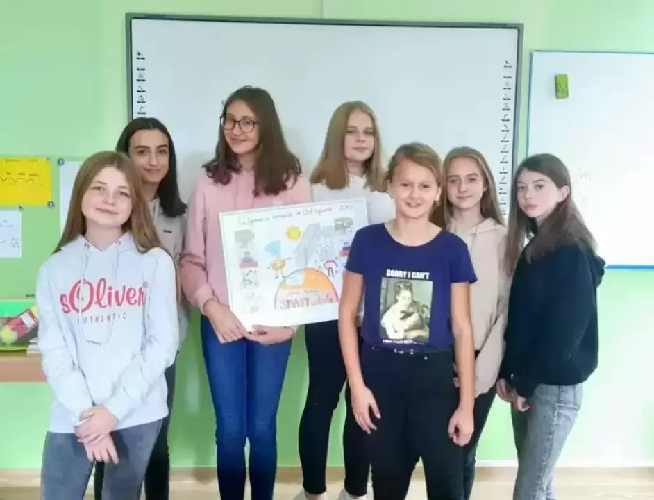 Uczniowie koła matematycznego wraz z opiekunem Heleną Madej i we współpracy z rodzicem jednej z uczennic – p. Andrzejem Kurzydło przygotowali pracę plastyczną „Smart szkoła”. Praca ta, deklaracja udziału w tygodniu kodowania oraz przystąpienie szkoły do programu mLegitymacja szkolna zapewniło nam zwycięstwo w konkursie.