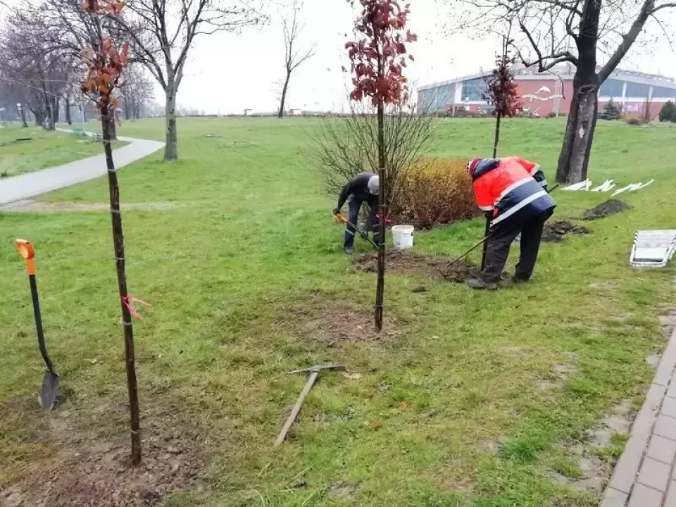 Pracownicy gminnej spółki posadzili 10 grabów odmiany kolumnowej. Choć to ciągle młode drzewa, już trafnie wpisują się w miejski krajobraz Środy Śląskiej. Jako gospodarz terenu OSiR zadba też o utrzymanie i nawożenie nowych drzew.