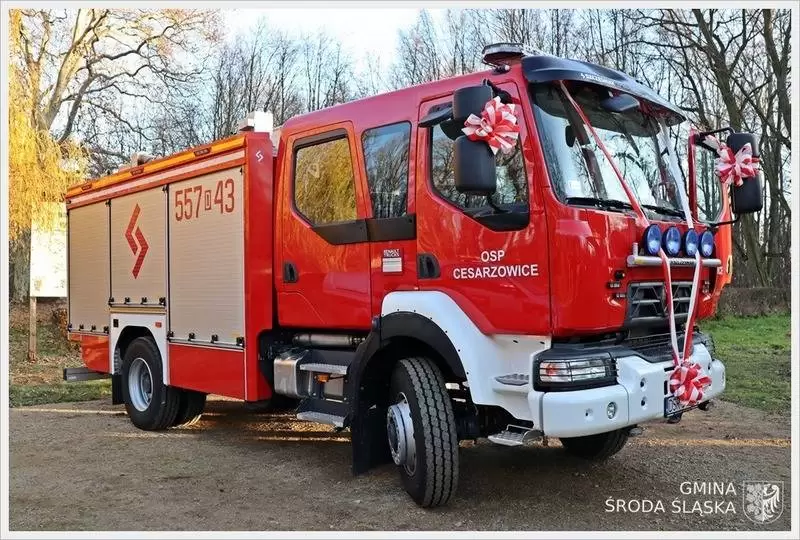 30 listopada w Cesarzowicach odbyło się uroczyste przekazanie przez burmistrza Środy Śląskiej nowego wozu strażackiego marki Renault dla tamtejszej Ochotniczej Straży Pożarnej, który na swoją pierwszą akcję wyjechał jeszcze przed uroczystością.