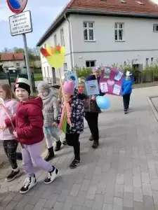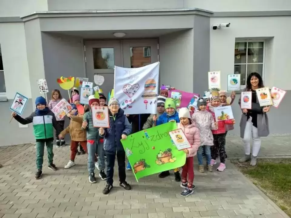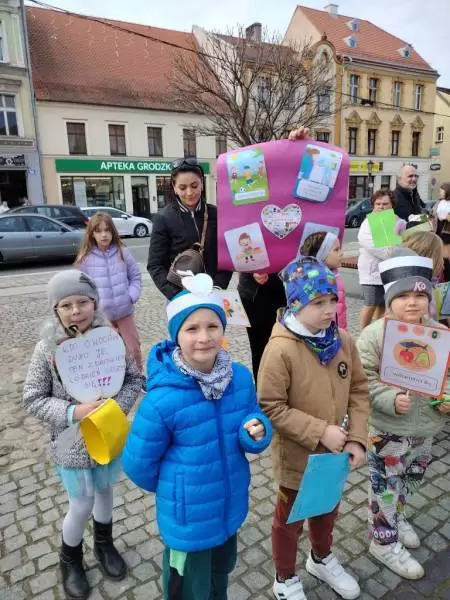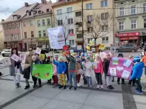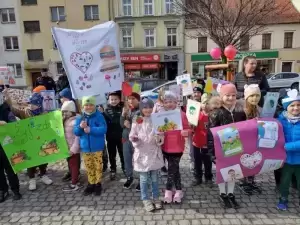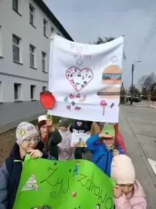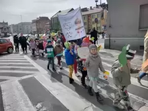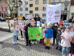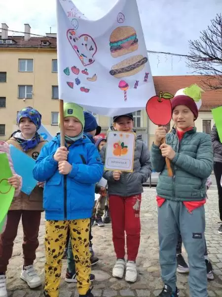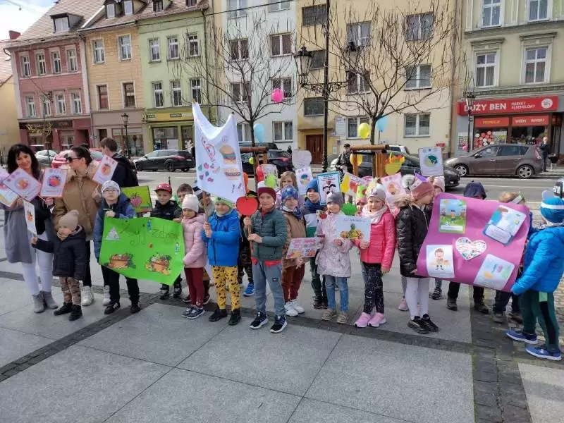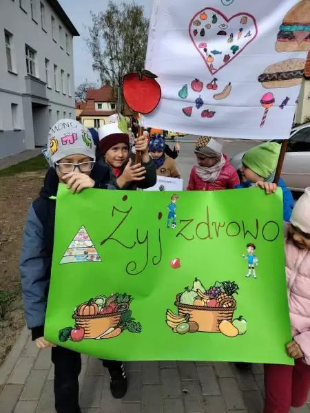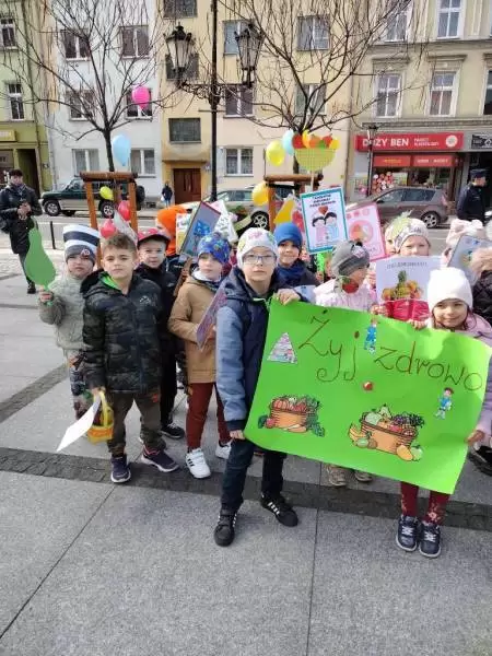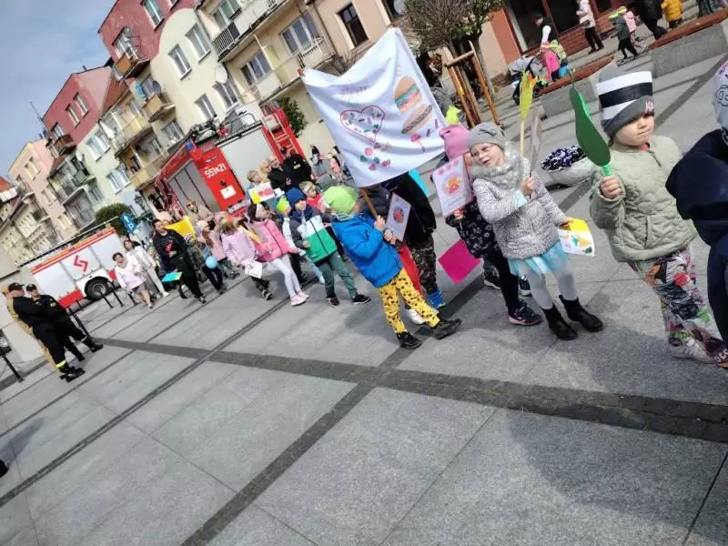 Przedszkolaki z dumą maszerowały ulicami miasta prezentując własnoręcznie wykonane plakaty i banery z prozdrowotnymi hasłami.