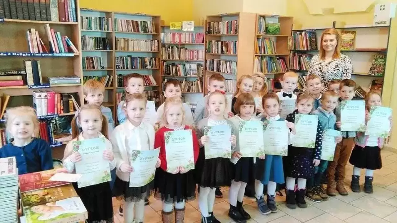 Pasowanie na czytelnika w bibliotece w Ciechowie